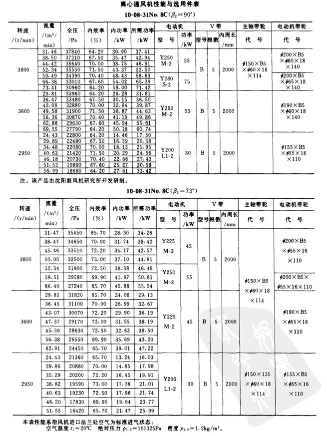 10-08-31型高壓離心風(fēng)機參數(shù)表