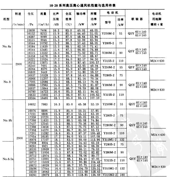 10-20型離心風機參數(shù)表