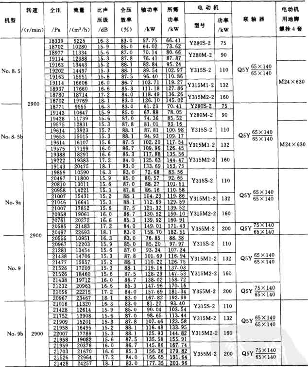 1.風機制成單吸人,機號有No.8a、8、8b、8.5a、8.5、8.5b、9a、9、9b,共九種。